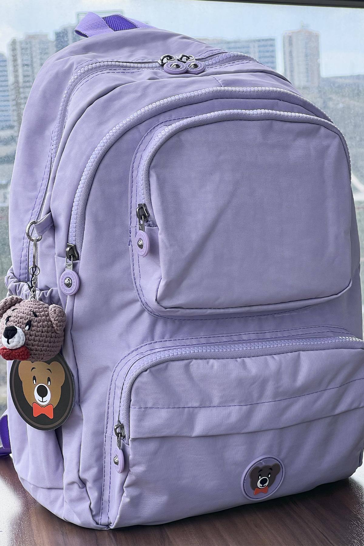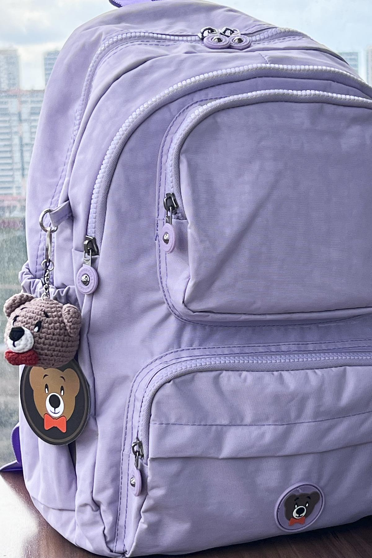 Nemo Bags LİLA Sırt, Okul, 14 İnç Laptop, Seyahat Çantası Amigurumi Ayıcık Anahtarlık Hediyeli