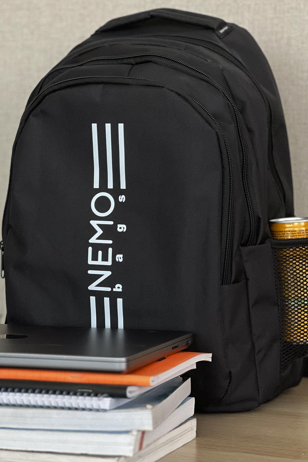 NEMO BAGS Siyah Sırt Çantası Büyük Boy Okul Çantası Seyahat Çantası Su Itici Spor Çantası 45x30x15cm 24 LT